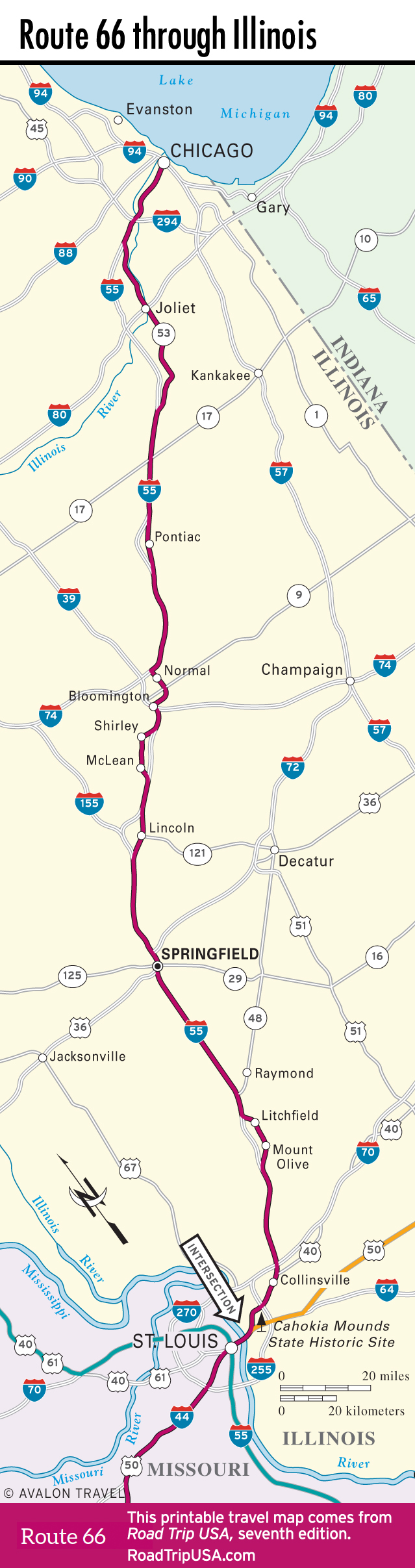 Map of Route 66 in Illinois