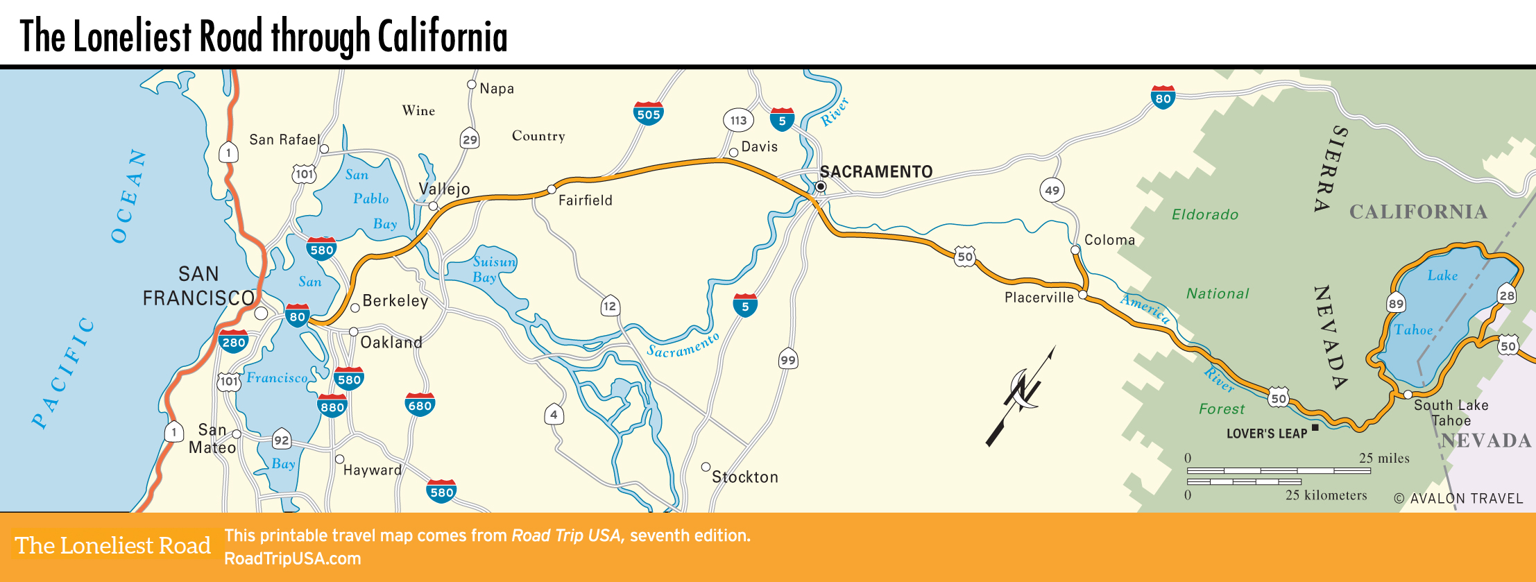 Map of the Loneliest Road through California